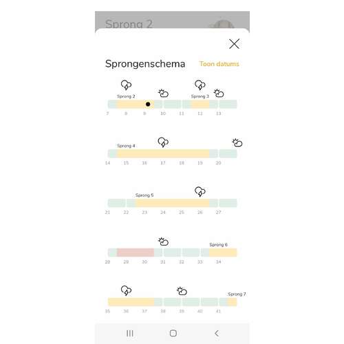 Het verschilt ook erg per kindje! Bij mijn zoontje duurde sprong 1 ongeveer 4 dagen en sprong 2 ongeveer 12 dagen!