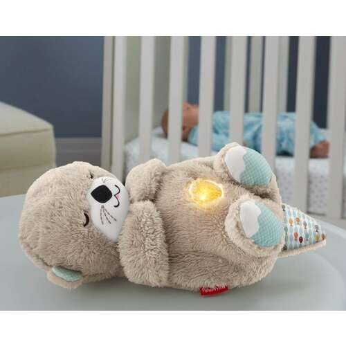 Ook gaat zijn buikje op en neer en is het dus net of hij heel diep slaapt (kun je ook uitzetten zodat alleen het muziekje afspeelt)
