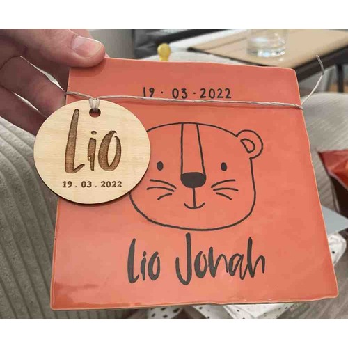 Wij hebben ons geboortekaartje op een tegeltje cadeau gekregen van vrienden 馃槃