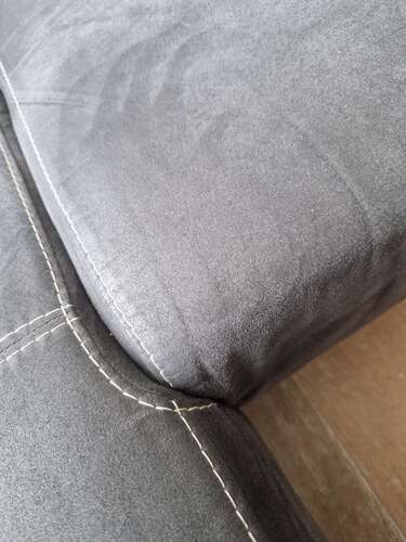 Wij hebben ook een lichtgrijze bank. Eentje die donker wordt als je hem de ene kant op aait en lichter als je hem de andere kant op aait. Geen suede gewoon stof.