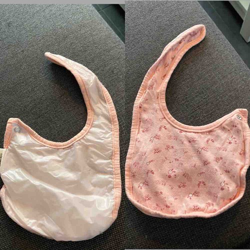 Wij hebben deze van de action. Wel al een tijd geleden ingeslagen voordat ze was geboren. Bij de eerste deze in de melk periode ook gebruikt en erg blij mee. De voorkant is stof en de achterkant plastic.