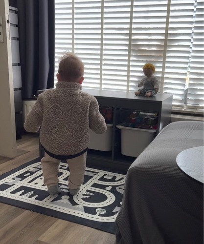 Wij hebben een openkast en een tafel van de ikea met bakken er in. Ik wissen ongeveer om de 2 a 3 weken het speelgoed zodat het uitdagend blijft. In de tafel bied ik zintuiglijk spel aan zoals speelrijst.