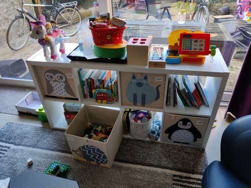 Wat staat er bij jullie in de woonkamer om het speelgoed op te bergen? Of wat had je liever gehad? Links , foto’s en tips zijn zeer welkom!