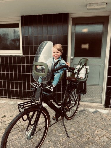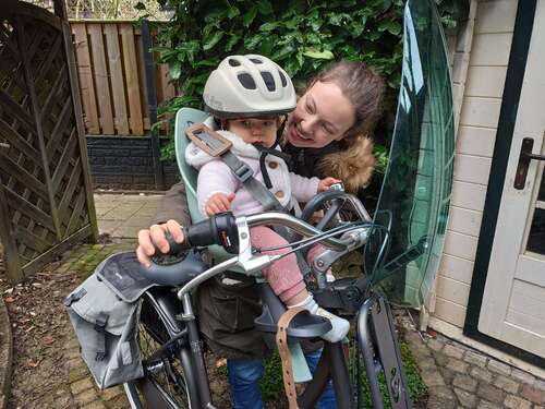 Ik heb de Batavus Mambo moederfiets, niet elektrisch en een voorzitje van Thule Yepp. Fietsen vindt ze echt helemaal fantastisch. Een fietshelm lukt ons helaas niet zonder drama , maar zijn daar ook niet consequent genoeg in door het gewoon door te zetten.