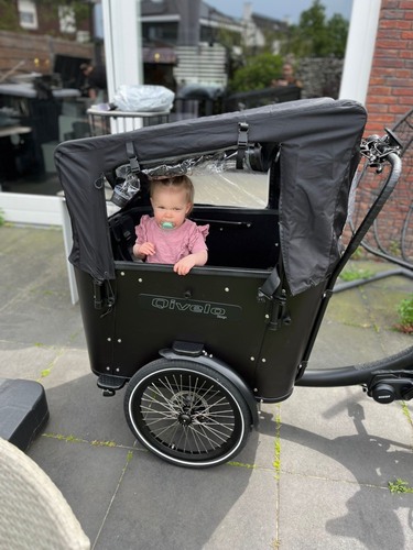 Wij hebben gekozen voor de elektrische bakfiets. Ideaal. Wij hebben de Qivelo N8. Alles kan mee buggy/boodschappen. Ze zit lekker in de peuterschaal. En lekker overdekt uit de zon of uit de wind/regen als t nodig is.