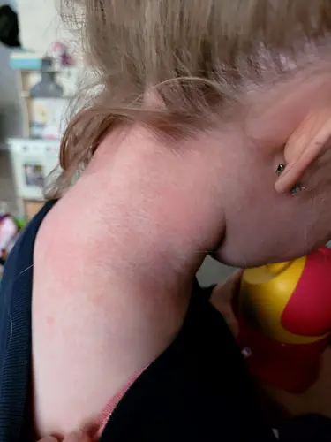 Maar de uitslag zit nu over haar gehele lichaam met zo hier en daar flinke blaasjes. Ze heeft een flinke onstoken keel sinds gister ook vol met blaasjes die erg pijnlijk zijn en op haar gehemelte allemaal rode puntjes. Ze hoest nog enorm veel en heeft koorts.