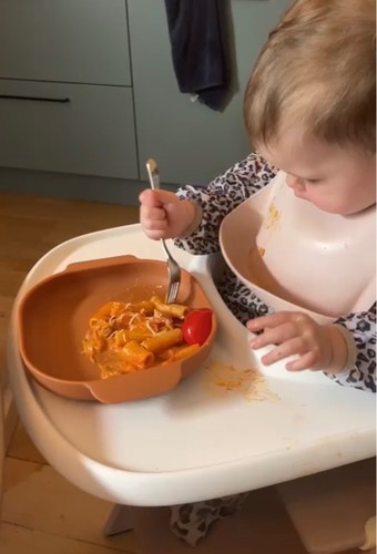 Onze dochter is bijna 16 maanden. Ze wil eten met een vork en op zich gaat dat goed, maar de vork wil niet goed prikken. We hebben plastic bestek van mepal, maar dat is dus niet scherp genoeg.