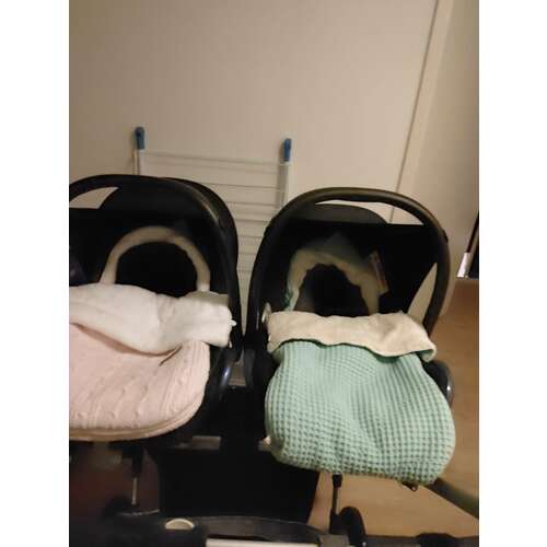Bij de kinderwagen 2 voetenzakken erbij gekocht omdat ze in de winter in het zitgedeelte zullen gaan. Op Vinted 2 voetenzakken van koeka voor de maxi cosi gekocht. Ik krijg een tweeling eind februari en dan kan het echt nog heel koud zijn, helemaal als de jongens snel mee naar huis mogen (ze worden met 35 weken gehaald)