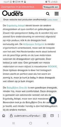 Dit geeft je wel veel info maar uiteindelijk hebben wij de keus in een winkel (Babypark) gemaakt. Hier hebben mijn man en ik beide gepast en gevoeld wat voor ons en voor een baby comfortabel zit. (Zachte materialen, geborgenheid etc).