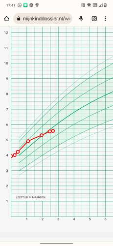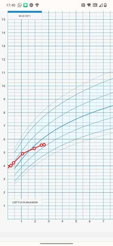 Mijn zoontje is 11 weken en 4 dagen vandaag en kijk idd naar de WHO curve.