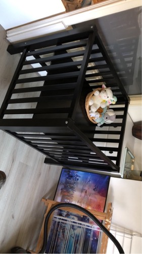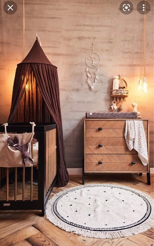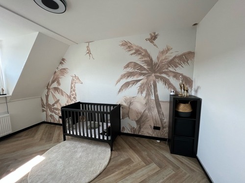 We hebben de box zwart (gratis over kunnen nemen van een vriendin, ideaal en je hergebruikt! Hij was wit dus zwart geverfd). Maar die staat in de woonkamer. Wel heb ik een ledikantje bij de kringloop op de kop kunnen tikken. Die verven we ook nog zwart maar dan houden we de spijlen in de hout kleur. Die hebben we alleen nog niet geverfd. En ik heb een trolley vanuit mijn vorige woning en die hergebruiken we voor een commode! Die heeft ook een zwart/hout look. Zo koop je niet teveel nieuw en gebruik je dingen die je al hebt!