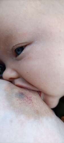 Heb ik ook gehad alleen iets verder op m'n borst. Ik zat nog niet helemaal lekker om haar aan te leggen, maar ze was zo enthousiast dat ze elders op m'n borst al aan het zuigen ging.😅 en ze creëerde een zuigzoen😆