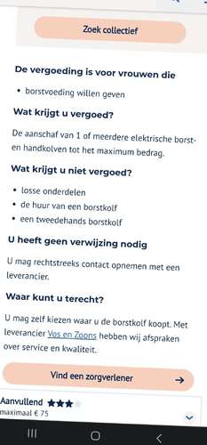 Ik heb de Philips avent gekocht en de factuur als declaratie ingediend bij zilveren kruis. Kreeg keurig binnen een paar werkdagen reactie, goedkeuring en uitbetaling van de declaratie. De kolf zelf was na heel veel korting (55% korting) uiteindelijk nog maar €54, dus uiteindelijk heeft het me niks gekost.