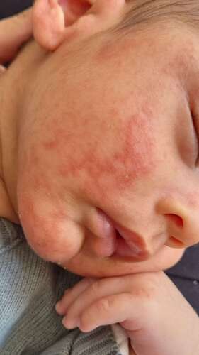 Ons zoontje van 7 weken heeft sinds een week rode vlekjes op zijn gezicht, gisteren naar de huisarts geweest en die heeft een crème voorgeschreven tegen eczeem. Cetomacrogol créme.