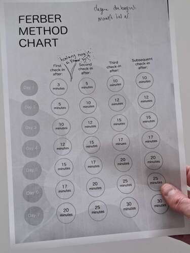 Wij hebben een soort schema als dit gebruikt en na 3 nachten sliep hij door. Ik vond het erg lastig ook omdat ik bang was voor de gevolgen. Ook ik heb mij ingelezen en er zijn van beide kanten verschillende resultaten. Ik ben nu erg blij dat we het zo aangepakt hebben, want ons zoontje werd zo zo zo vaak wakker en ik was gesloopt. Ik merk niks van hechtingsproblemen, dat hij minder bij mij wil zijn of andere dingen wat je allemaal leest. Maar wat ik al zei, verschillende bronnen, verschillende uitkomsten. Je moet vooral doen wat goed voor jouw voelt. Ik vond het heel lastig die drie nachten, maar nu zoveel meer energie en nog steeds een zoontje die mij liefde geeft :)