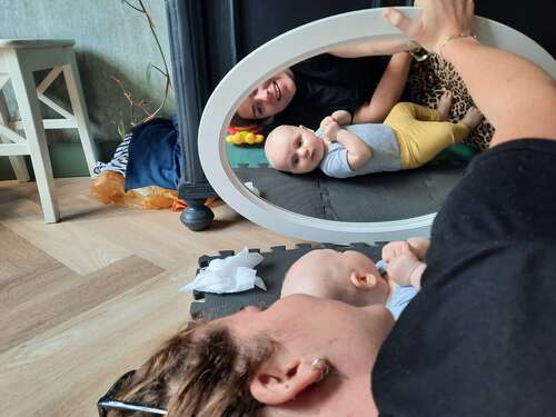 Maar ieder kindje eigen tempo hoor! Gewoon lekker met ze spelen en het komt vanzelf als ze gaan rollen idd! Dat kan ook pas bij 7 maanden zijn 🤷🏻♀️ en dat maakt ook niet uit toch 🤭