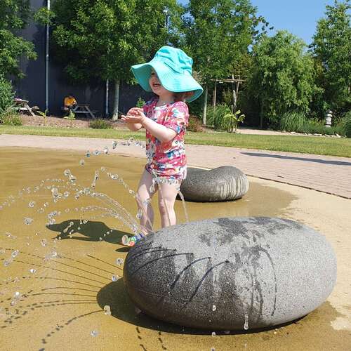 Mijn meisje heeft vandaag heerlijk in de spettertuin gespeeld met uv zwemshirt en uv zonnehoedje 😊