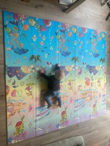 Wij hebben een groot foammat! Kan opgevouwen worden en in een tas gedaan worden. Is ook handig om mee te nemen. Allerlei leuke printjes. Deze kant is toevallig aquarium maar de andere kant van de mat is dierentuin. Het is antislip en waterdicht. Ik vind het echt een ideaal ding. Zoontje speelt er graag op. Ook buiten is hij fijn 馃槉
