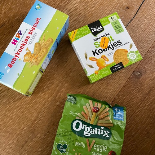 De zogenaamde baby/dreumes-koekjes bevatten ontzettend veel suiker (zie een aflevering van Keuringsdienst van Waarde, helaas ook die van de Kleine Keuken etc.).