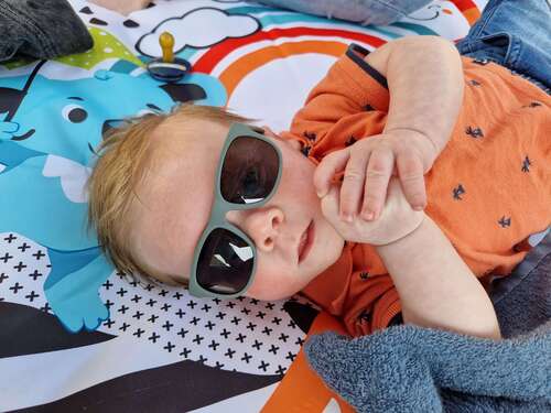 Wij hebben een KI ET LA zonnebril gekocht voor ons zoontje. In eerste instantie omdat we hel vanaf volgende met de fietskar van en naar de oovang brengen en we zijn oogjes wilden afschermen voor teveel wind. Hij verdraagt zijn brilletje goed (met en zonder elastiekje), dus doen we het hem nu sowieso op wanneer we overdag de deur uit gaan. Tijdens een wandeling is het sowieso onmogelijl te voorkomen dat hij toch even zon recht in zijn gezicht krijgt.