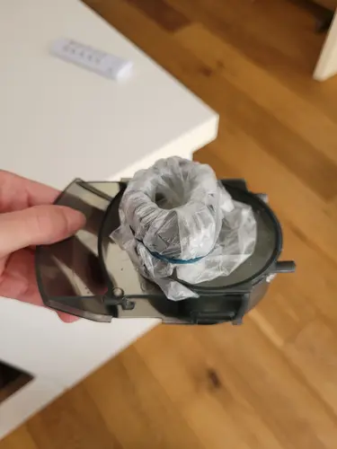 Ik heb een boterham zakje in het zwarte klepje gedaan. Wel opletten dat het ...