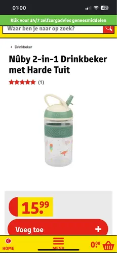 Ik heb een drinkfles met rietje bij de kruidvat vandaan; eigen merk. Deze is wel te doen.