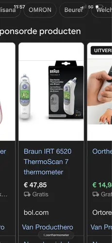 Braun IRT 3030 - Oorthermometer. Via bol.com besteld en vindt hem super fijn. Wel (extra) wegwerpoordopjes erbij bestellen 馃槉.