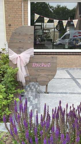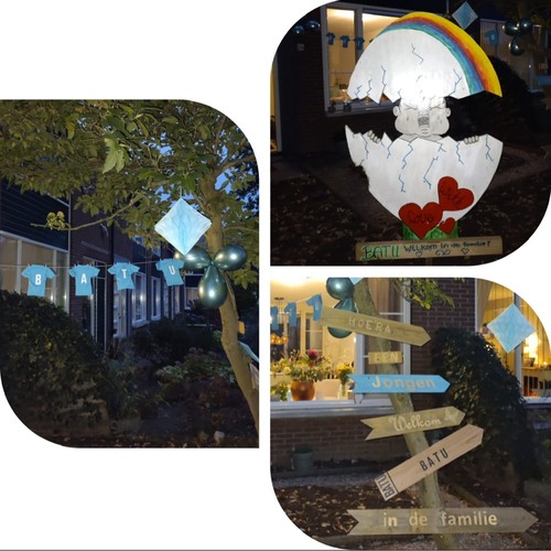 Wij wonen iets van de straat af. Dus er komt een vlag en een geboortebord. Maar hoe doe eruit gaat zien is aan mijn man. En anders hebben we er nog 1 van ons eerste kindje😂