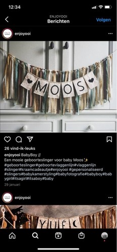 Van eerste kindje deze besteld met zijn eigen naam heel leuk! Ze hebben leuke slingers, ga zeker deze keer ook daar bestellen. Had hem voor het raam hangen toen.