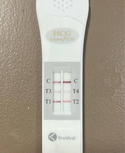 Deze vandaag op 4+5! Ik dacht probeer deze eens, maar enige wat ik nu zeker weet (volgens de handleiding) is dat het HCG boven de 1000 is wat dus weer past bij de 5e zwangerschapsweek +-