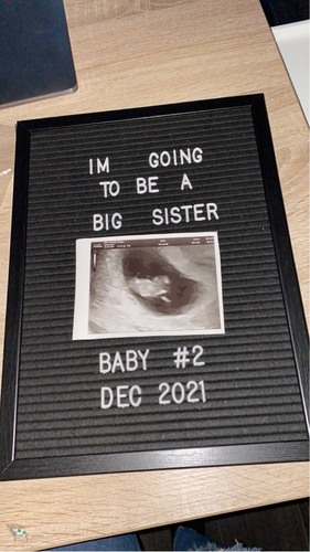 Toen ik zwanger was van mn 2de heb ik dit bord gehaald en een foto gemaakt met me dochtertje er langs, zij droeg toen een romper met big sister erop. Deze toen in een fotolijstje en gegeven op mijn schoonvader zijn verjaardag, en een week later aan mijn familie op moederdag. Super leuk ze hebben deze foto nog steeds beide in de woonkamer staan