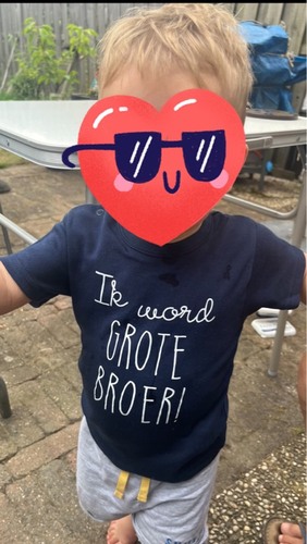Wij hebben een T-shirt gekocht met voorop 'ik heb een geheimpje...' en op de rug 'ik word grote broer'. Deze heeft ie gedragen bij wat familiegelegenheden en daarna hebben we een filmpje waar mijn vriend het shirt probeert de filmen. Zoontje ziet het als tikkertje dus het is uiteindelijk een erg komisch filmpje voordat je de boodschap echt ziet