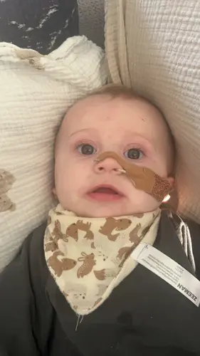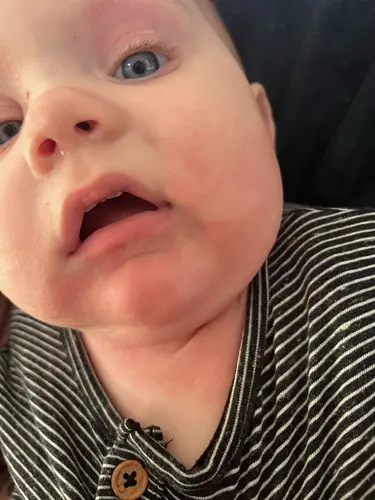 Bij mij kwam naar de 2 keer, morgen afspraak bij de kinderarts. Is al vervelend om jouw baby zo te zien. Hopelijk voelt jouw kindje verder goed eronder. Sterkte!