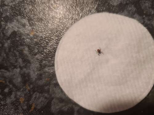 Ik vind deze teek nog best klein. Ik denk niet dat hij langer dan 24 uur gezeten heeft...