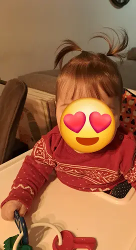 En van die doorzichtige mini elastiekjes. Eerst met Zwitsal lotion het haar even nat maken en dan kammen tot een spriet op haar hoofd🤩