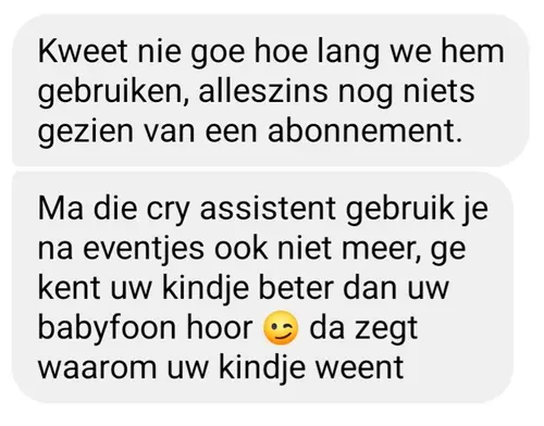 Hey Allen, hier hetzelfde gedacht te veel keuze. Uiteindelijk zit ik hier met een dilemma. Volgens de medewerker van Dreambaby is maxi Cosi see pro heel goed. Maar naar 6maanden is moet je een abonnement nemen voor cry-assit. Maar op bol.com weinig en halve goede reacties. En dan heb ik Kolvy babyfoon pro. Zeer gelijkaardig met de Maxi-Cosi(5€ goedkoper 😅) en meer en betere reacties. Nog mensen die KOLVY babyfoon kennen? Is nieuw sinds vorig jaar.