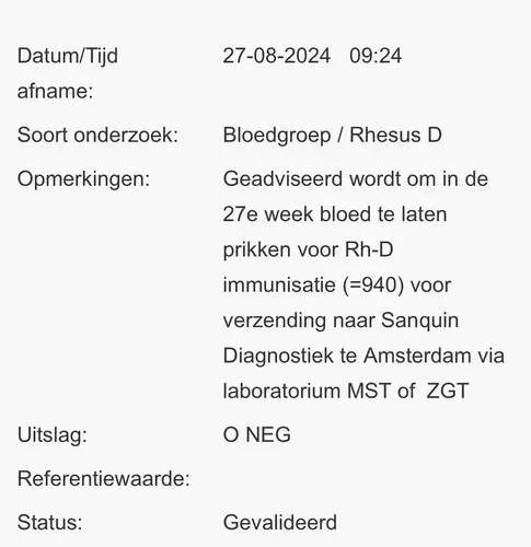 Dank je wel, dit keer weet ik het ook niet mijn dochter (van andere partner) was gelukkig ook rhesus negatief. Maar mijn partner nu weet zijn bloedgroep niet dus moeten nu echt afwachten tot 27 weken ook. Maar ik maak me geen zorgen, er zijn gelukkig injecties voor!