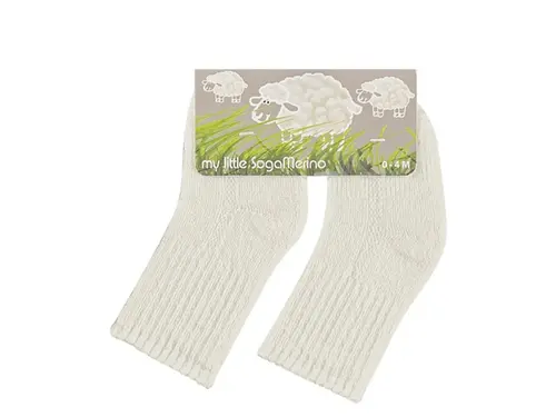 Hij trekt er graag aan, stopt ze in zijn mond of schuift uit enthousiasme met zijn voetjes tegen elkaar aan waardoor ze uitglippen.