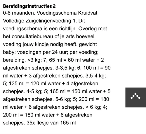 Op het pak van de zuigelingenvoeding zie je ook een richtlijn.