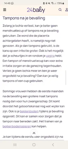 Hoe ik het altijd begrepen heb is dat je niks mag gebruiken bij t vloeien na de bevalling, maar bij de echte menstruatie wel weer