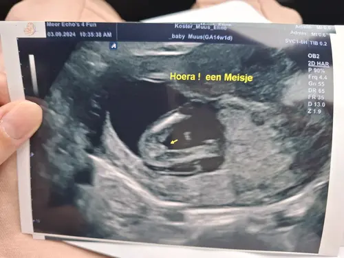 Ik was precies 14 weken met de 13 weken echo, ze mogen het inderdaad niet zeggen, ook niet als ze het al kunnen zien... De echoscopiste versprak zich wel twee keer en ik dacht zelf ook het geslacht te zien, maar goed, dan kan ook een gewone verspreking zijn en ik ben ook geen pro in het geslacht herkennen natuurlijk. Dus een pretecho is altijd aan te raden als je het wilt weten. En natuurlijk super leuk om extra naar die kleine te kunnen kijken 🥰