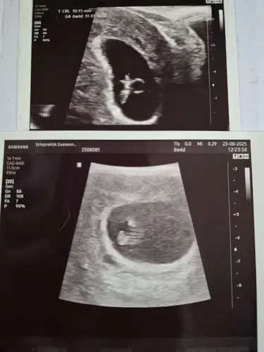 Nee, allebei uitwendig gek genoeg... Bij de eerste echo had ze ook niet zoveel moeite met scherp stellen. En nu was er onmogelijk iets duidelijk te krijgen 😞