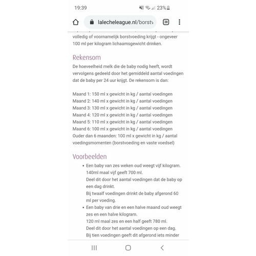 Zo kun je uitrekenen hoeveel ze gemiddeld per voeding mogen krijgen.