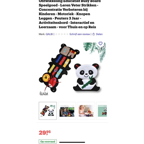 https://www.bol.com/be/nl/p/qalbi-panda-montessori-ontwikkeling-educatief-busy-board-speelgoed-leren-veter-strikken-concentratie-verbeteren-bij-kinderen-motoriek-knopen-leggen-peuters-3-jaar-activiteitenbord-interactief-en-leerzaam-voor-thuis-en-op-reis/9300000078385786/?Referrer=ADVNLGOO002027-G-112431145141-S-1610719352306-9300000078385786&gclid=Cj0KCQiA3rKQBhCNARIsACUEW_aZOosMn9kPWys7vjW6WyG-chdi80TD5uzXuuUU-1M1DaYCUm9LUz8aArXTEALw_wcB