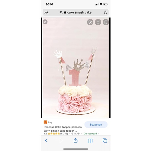 Wij bestellen een taart voor het bezoek bij een bakkerij en maken zelf een smash cake voor onze dochter. Ik vind het een fijner idee dat ze niet gelijk een suikerbom op eet omdat ze nu ook geen toegevoegde suiker eet. Inspiratie vond ik op