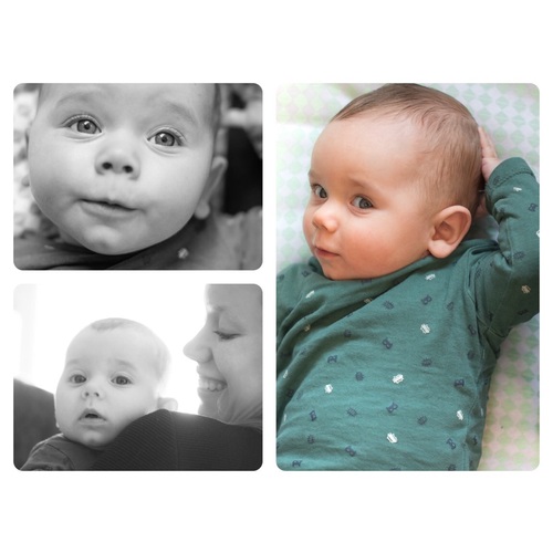 Wij hebben het bij mijn eerste gedaan toen hij 4,5 maand was. Voordeel van wat ouder vond ik dat hij langer wakker kon zijn en ook echt wel actief de camera in keek (bij de foto rechtsonder was hij net wakker dus wel wat duffer).