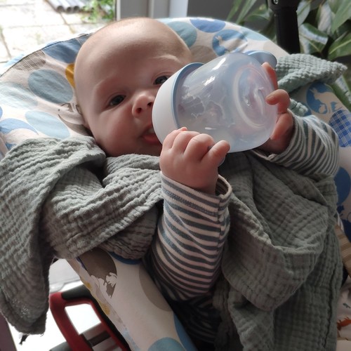 Jaa dat fles “vasthouden” doet mijn dochtertje ook🤣. Alleen soms houd ze haar handjes weer iets teveel bij die speen waardoor ze weer afgeleid wordt door haar handjes.