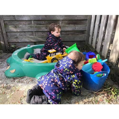 Ik heb het pak bewust vrij ruim gekocht. Ze zit nu aan het eind van maat 74, maar draagt het pak al in 86. Door de elastische boorden blijft het prima zitten. Het is nu groot zat om haar jas er nog onder te dragen. En ook een voordeel dat ze er zo wat langer mee kunnen doen.