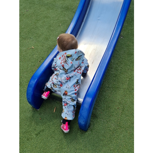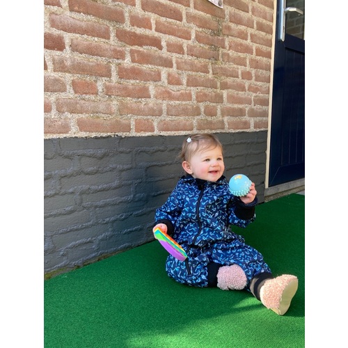 Wij zijn er ook fan van! Voor zowel buiten spelen als op de fiets. Tot nu wel soms nog wat extra's eronder gedaan op de fiets, maar nu het weer wat beter wordt is dat denk ik niet meer nodig. Het is softshell met fleece binnenkant, het houdt zeker regen en wind tegen, maar geeft niet super veel warmte, dus daarom evt extra laagje eronder bij koud weer. En zoals gezegd zitten ruime maten ook nog echt prima. Mijn dochter zit nu goed in maat 80, en heb net maat 92 erbij gekocht. Deze kan ze nu op zich al aan door de elastieke boorden maar zit wel weer lekker ruim :)