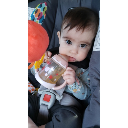 De munchkin 360 heeft mijn dochtertje nog niet helemaal door, daarvoor in de plaats heb je ook munchkin rietjes bekers. Aan de onderkant van het rietje zit een verzwaard gedeelte waardoor ze altijd kunnen blijven drinken, ook als ze hem scheef of op zn kop houden. Super handig! Deze beker had ze zo door en ze kan hier ook al vrij zelfstandig uit drinken.